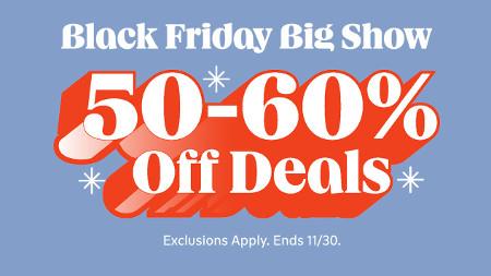 Black Friday deals start now! Shop in store and enjoy 50-60% off deals.