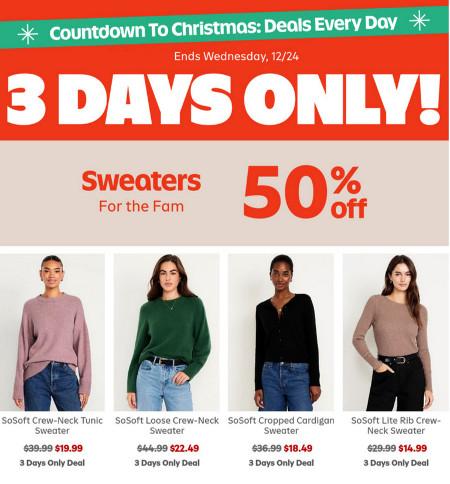 Hurry! Shop in store and get 50% off sweaters for the family.