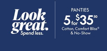 Look great, spend less! Shop in-store and get 5 panties for $35.50.